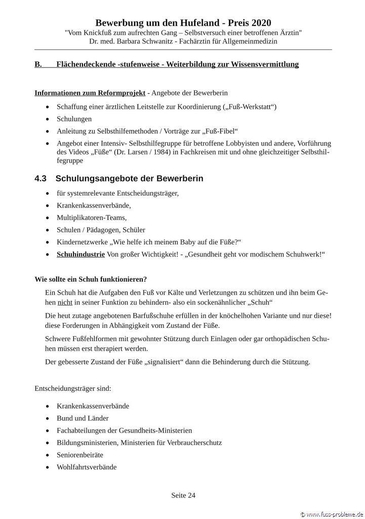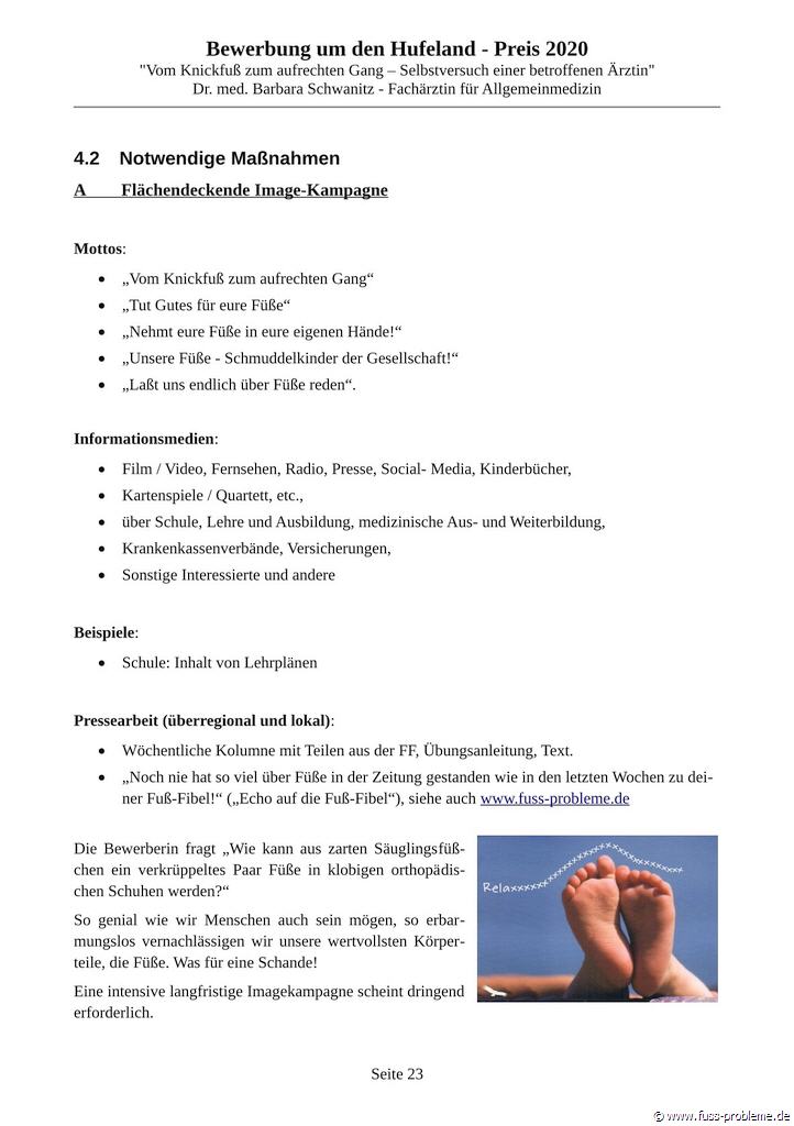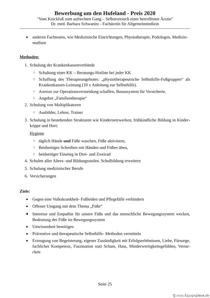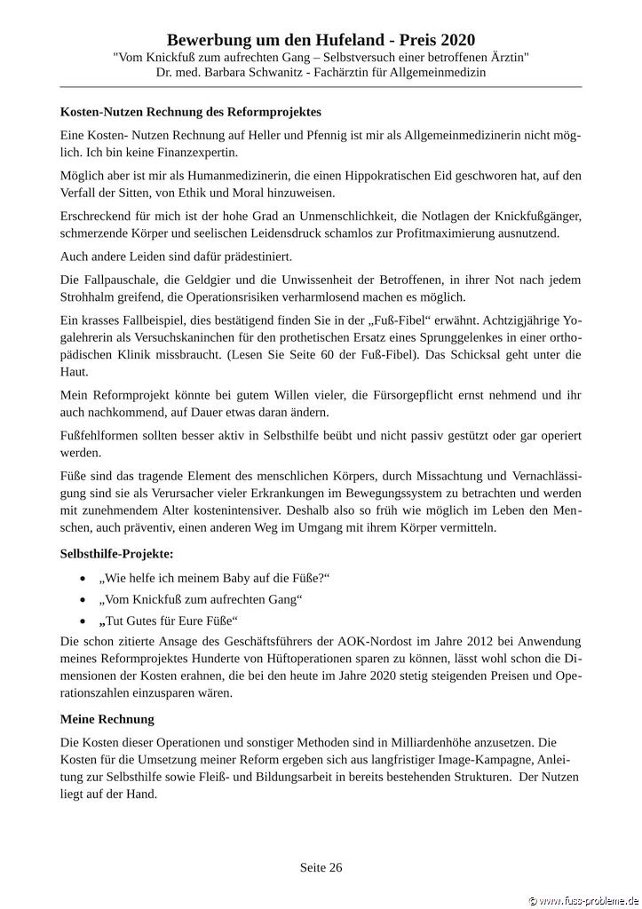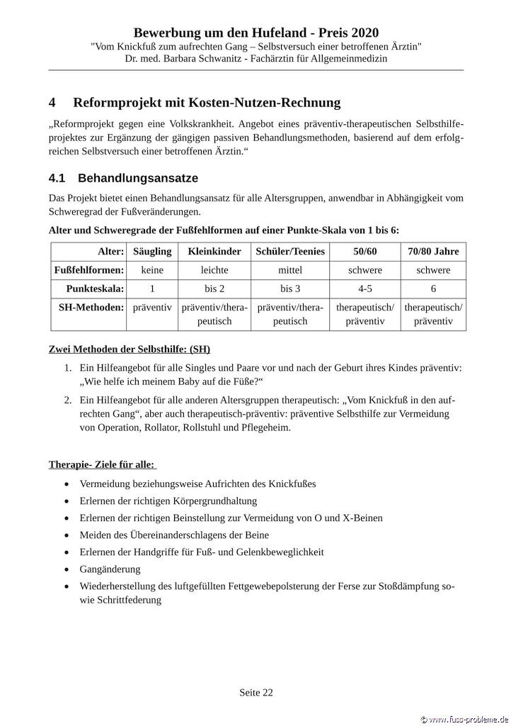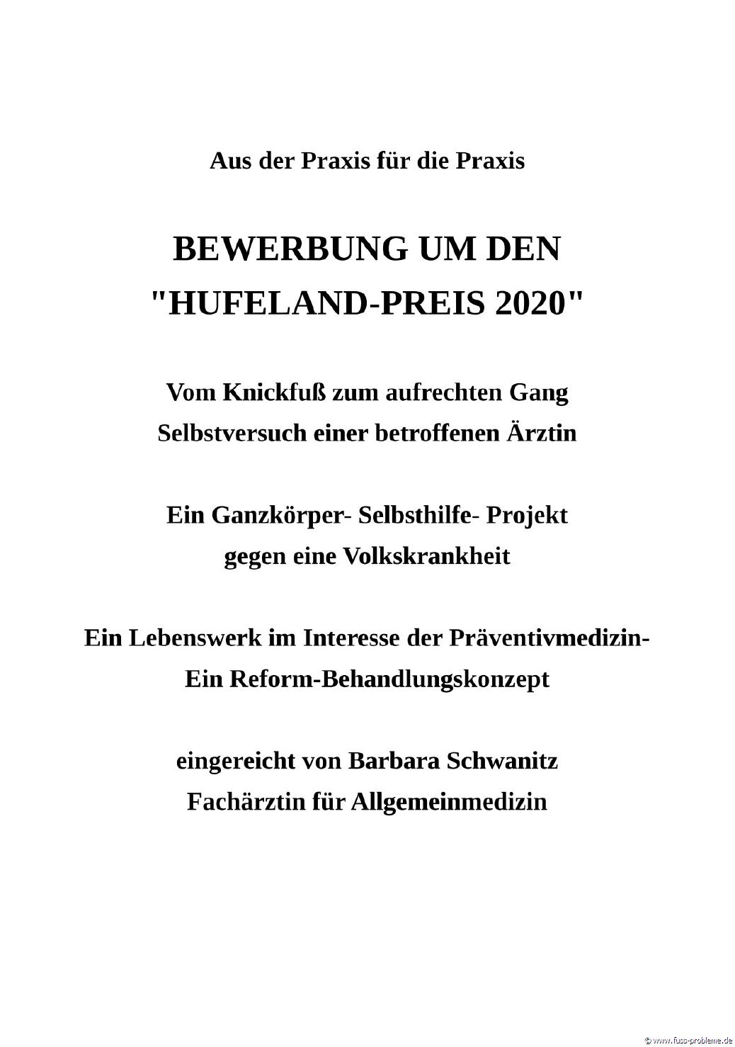 Bewerbung um den renommierten HUFELAND-PREIS 2020 für präventive Medizin, gegen eine Volkskrankheit mit dem REFORM-Behandlungskonzept "Vom Knickfuß zum aufrechten Gang".