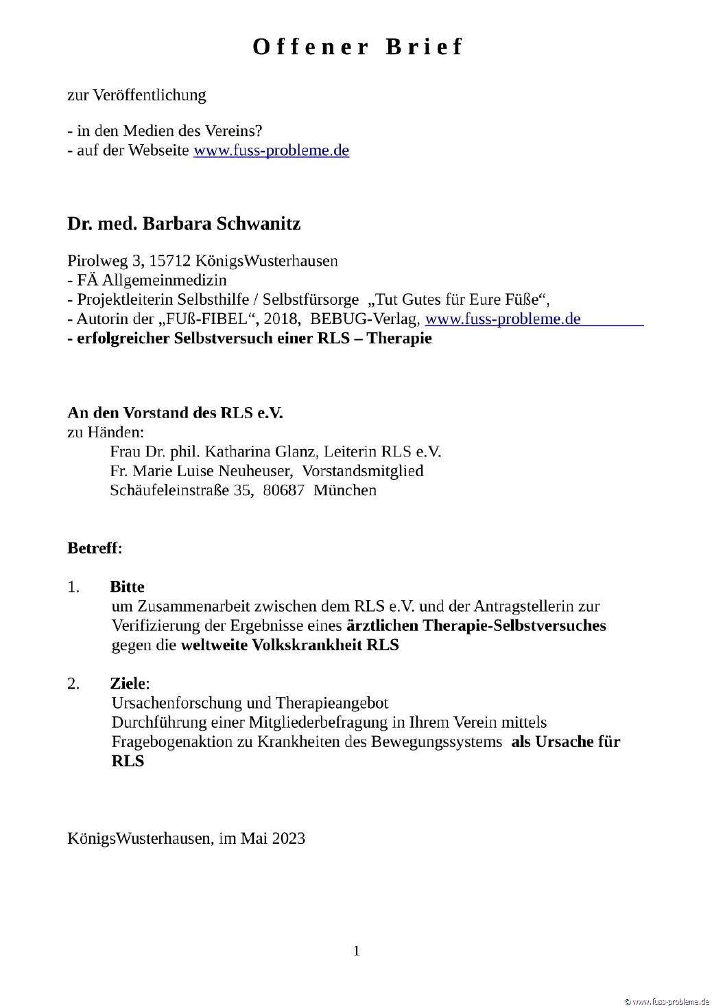 Sie sind hier: Startseite » Restless legs Syndrom (RLS) Brief an den Landesvorstand Dokumente laden Laden des gesamten Briefes... [712 KB] Laden aller Anlagen... [12.220 KB] Restless legs Syndrom (RLS) Brief an die Landesgruppen